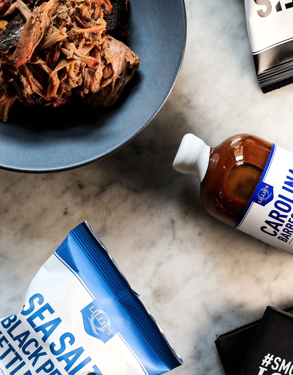 Memphis barbeque sauce has three main ingredients: tomato sauce, sugar and spices. At Lillie’s Q we also add a little apple cider vinegar. The sauce is thick and sweet and is used for basting near the end of the cooking process and as a finishing sauce served on the side. While the cooking time varies depending on the size and cut of the meat, in general ribs take 3-5 hours while a pork shoulder or butt take around 6 hours.